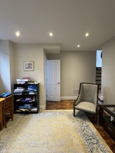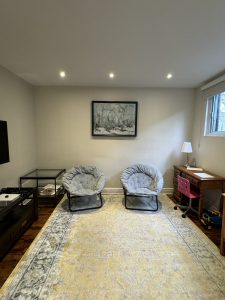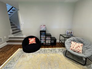 Our client wanted to revamp their living area to better suit their family’s needs. The goal? Remove the bulky TV stand, create a well-organized workspace for homework and arts & crafts, and design a cozy reading and play area for the kids.